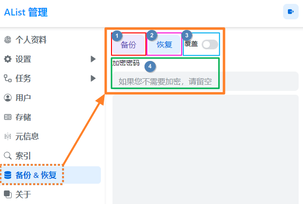 备份:进行 OpenList 数据进行备份(不包含索引)