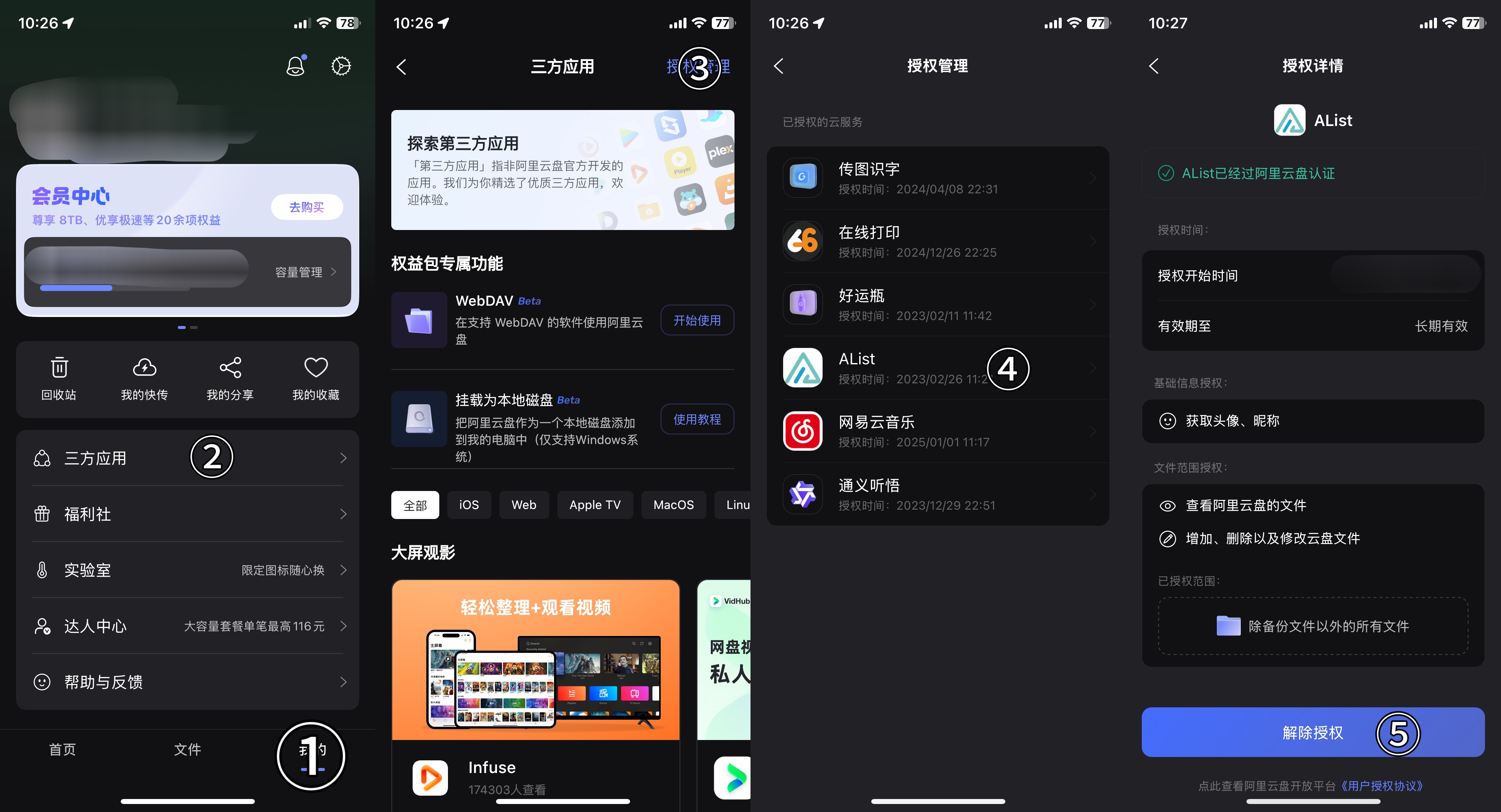 - 百度网盘App - 我的 - 设置 - 帐号管理 - 授权管理 - Alist - 解除授权